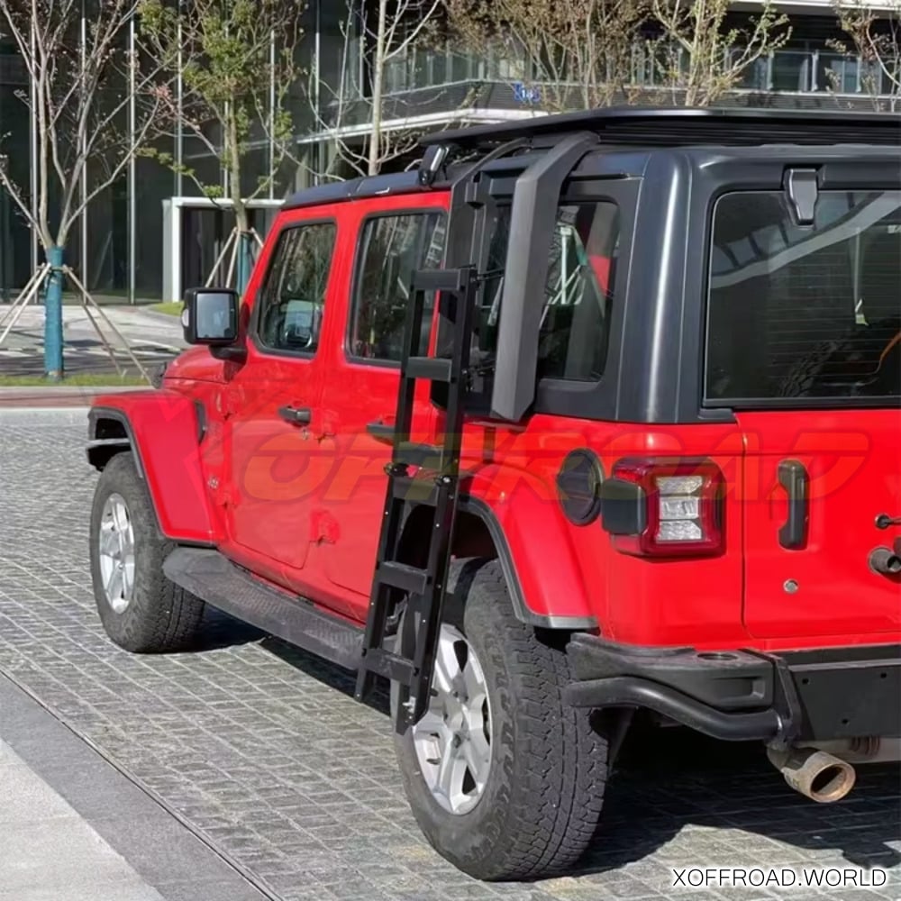 Džipi so znani kot vzdržljiva vozila, ki se lahko spopadejo z vsakim terenom. Vendar so znani po omejenem tovornem prostoru. Improve your JL Wrangler’s payload with the X-Offroad Roof Rack System with ladder. Aluminijasta konstrukcija, povezana le z vijaki. Primerno samo za tovarniško fiksno streho.