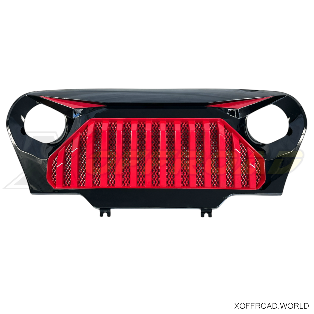 Zagotovite si nov videz sprednje maske Jeep z novo masko X-Offroad iz serije "Transformers". Rešetka popolnoma pokriva tovarniško rešetko. Iz brizgane plastike. Comes already painted. Enostavna namestitev. Ni potrebno vrtanje ali rezanje.