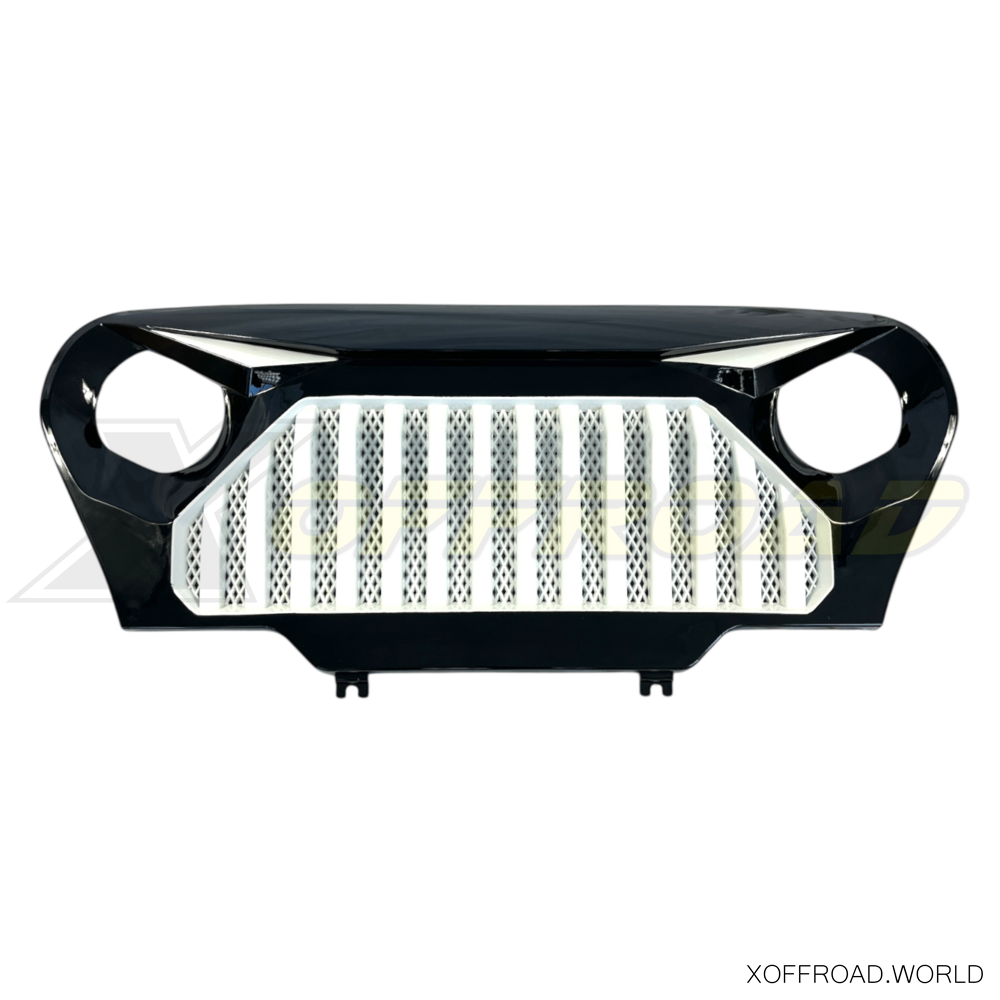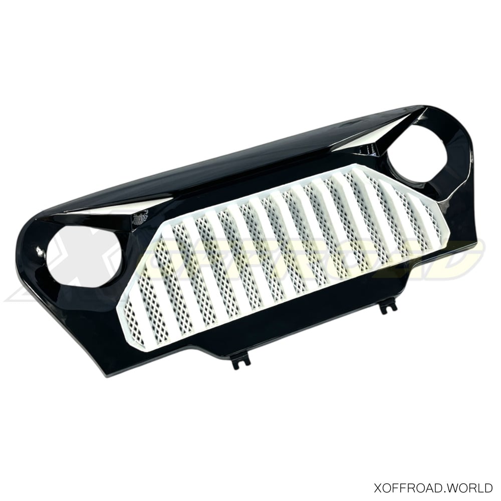 Zagotovite si nov videz sprednje maske Jeep z novo masko X-Offroad iz serije "Transformers". Rešetka popolnoma pokriva tovarniško rešetko. Iz brizgane plastike. Comes already painted. Enostavna namestitev. Ni potrebno vrtanje ali rezanje.