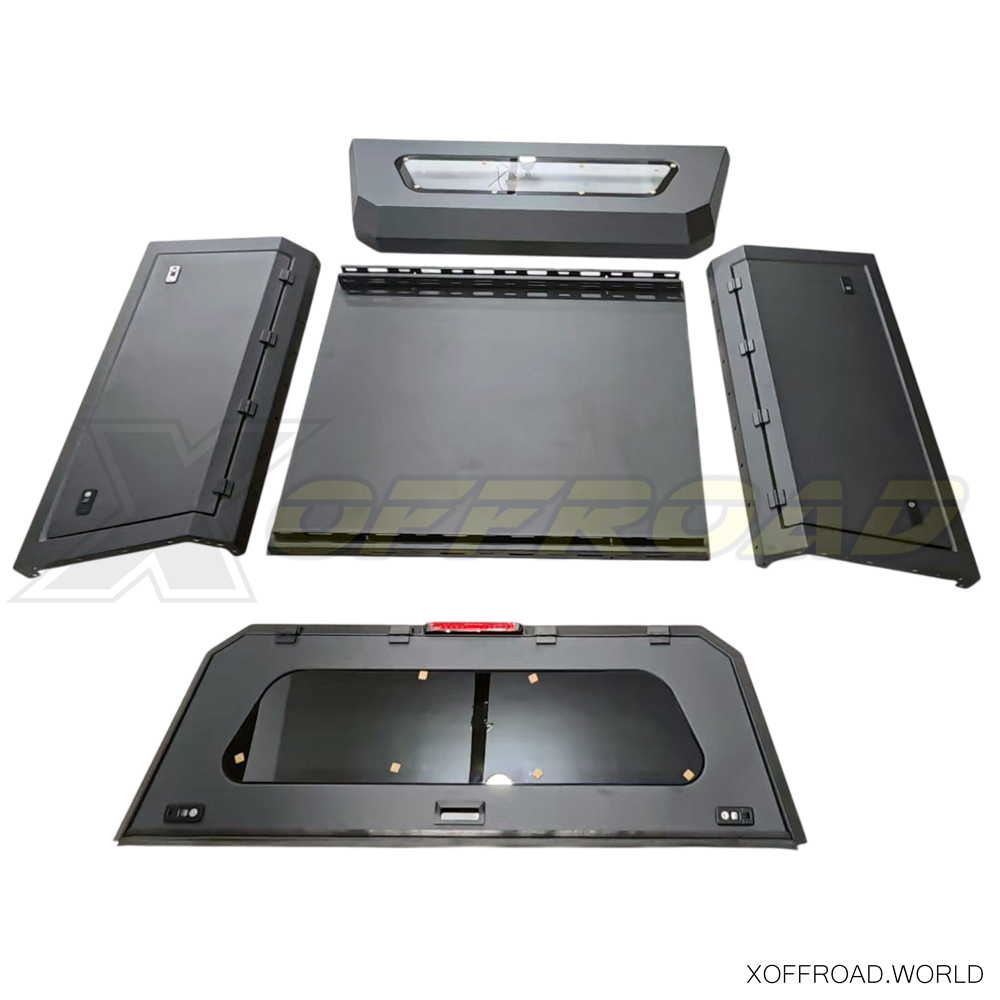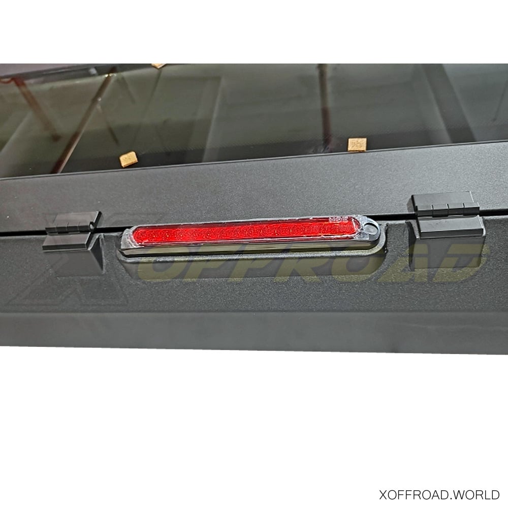 The X-Offroad Truck Bed Canopy offers a robust layer of security for the storage area of your Jeep Gladiator. Outfitted with lockable solid side doors and lockable rear window that feature high-strength locks and durable, tamper-resistant materials, this truck bed canopy ensures that your gear and equipment remain secure against theft or damage from external elements. This level of security is essential for travelers and adventurers who often carry valuable equipment and need dependable protection while their vehicle is parked in remote locations or left unattended during outdoor activities. This reassurance allows owners to engage in their adventures confidently, knowing their belongings are secure. The X-Offroad Truck Bed Canopy includes an integrated third brake light.